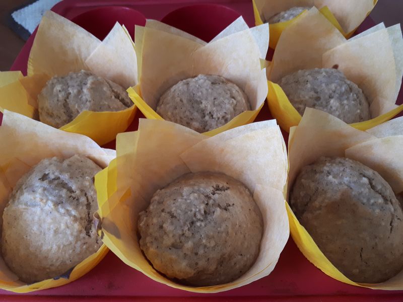 De nouveaux petits muffins healthy qui nous ont régalés pour le goûter. Je les ai piochés chez notre charmante Natalia que vous pouvez retrouver sur son blog « Sucre et épices« . Comme nous le disait Natalia ils sont très moelleux.