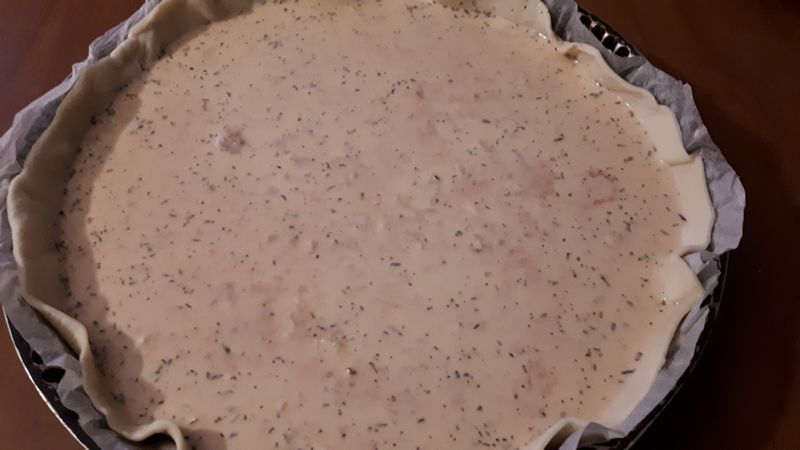 - Disposer la pâte dans un moule à tarte, la piquer avec une fourchette.