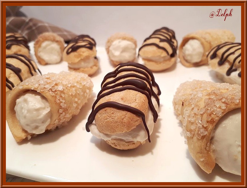 Ingrédients : Pour 6 minis éclairs et 6 cornets