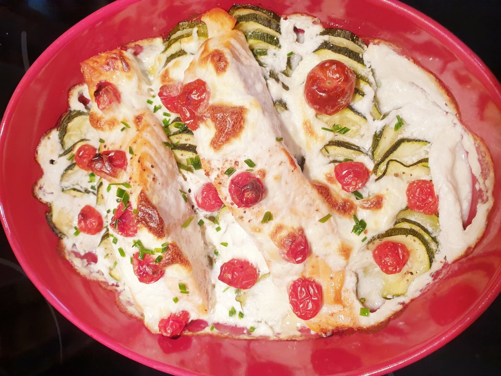 Voici ma fidèle Ginette, que vous pouvez retrouver sur sa page FB bienveillante "Soutien de mamie Ginette". Ginette est à nouveau venue me voir pour cuisiner le saumon au lait de coco sur son lit de courgette.