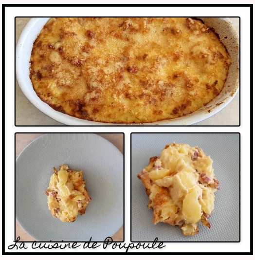 Christelle m'a fait le plaisir de tester une deuxième recette, les pommes de terre gratinées à la carbonara. Je crois qu'ils se sont régalés, et cela me fait un très grand plaisir.
