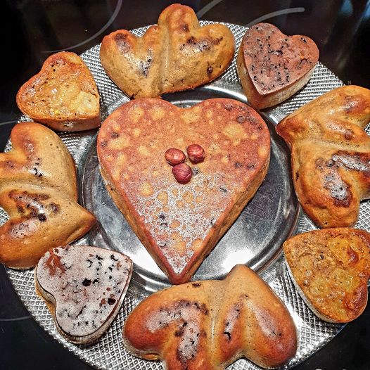 Ginette m'a fait le plaisir de tester une autre recette et cette fois-ci du sucré, avec le gâteau aux poires chocolat, amandes et noisettes, qu'elle a réalisé en portions individuelles.