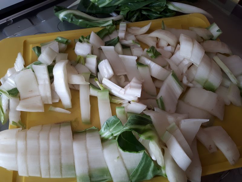 - Laver et couper vos cardes de blettes en tronçon, garder le vert des feuilles pour une autre recette.