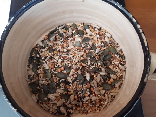 - Mélanger les graines, en réserver 30 grammes.