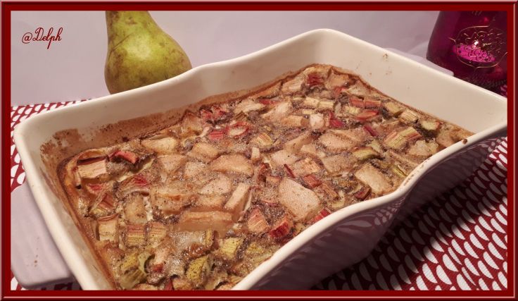 Sabrina m'a fait le plaisir de tester une autre recette et cette fois-ci du sucré, avec La flaugnarde allégée aux poires.J'avais pour ma part alliée la poire à la rhubarbe, mais lorsque ce n'est pas de saison on peut ne mettre que de la poire.