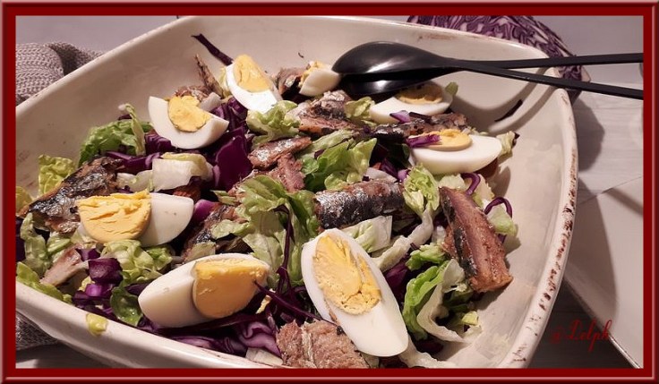 Ma chère Natalia du superbe blog Sucre et épices est venue à nouveau dans ma cuisine pour tester cette fois-ci la salade de chou rouge aux sardines. Une salade qui venait tout droit de chez mon amie Martine du blog Kilomètre-0.