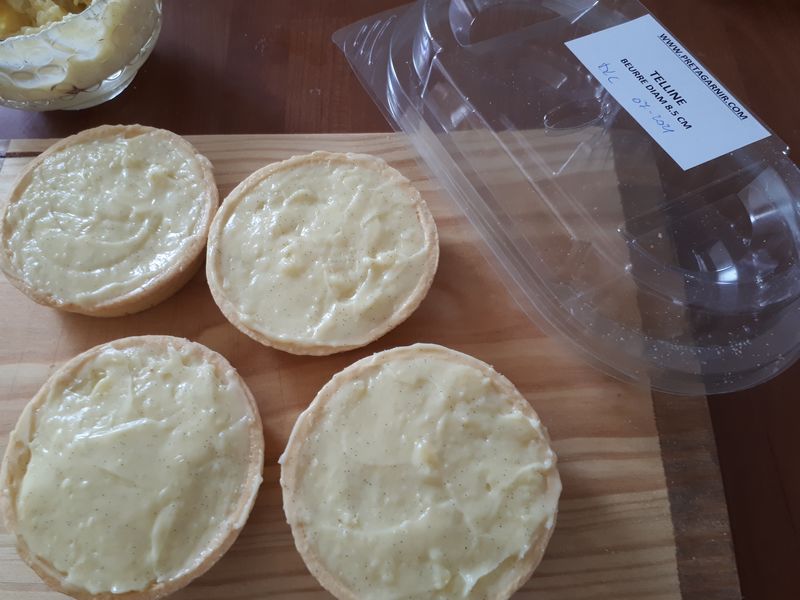 - Lorsque vos fonds de tarte sont prêts, verser la crème sur les fonds de tarte, lisser le dessus, laisser refroidir au moins 2 heures au frais.