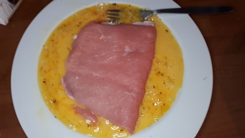 - Tremper le cordon-bleu dans l’oeuf puis la chapelure en enrobant bien l’ensemble.