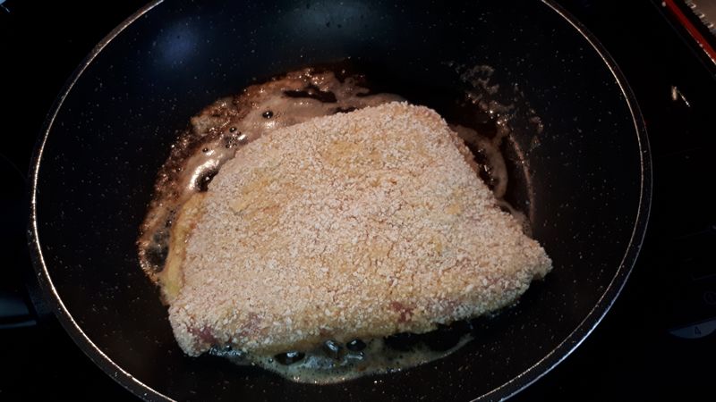 - Faire cuire le cordon-bleu dans un poêle avec un peu de beurre ou d’huile. Retourner pour qu’il soit bien doré des deux côtés.