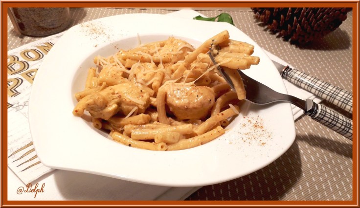 Puis voici Estelle, du beau blog "Cuisine et métissage" toujours dans la cadre du jeu organisé par Sonia "Tests de recettes entre blogueurs",est venue tester le poulet aux pâtes et épices cajun. Estelle a tout de suite été attirée par cette recette car il y a tout ce qu'elle aime dedans.