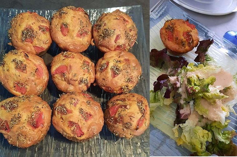 Sabrina a continué sur sa lancée en testant une quatrième recette, les muffins façon pizza.Ses convives ont vraiment beaucoup apprécié.