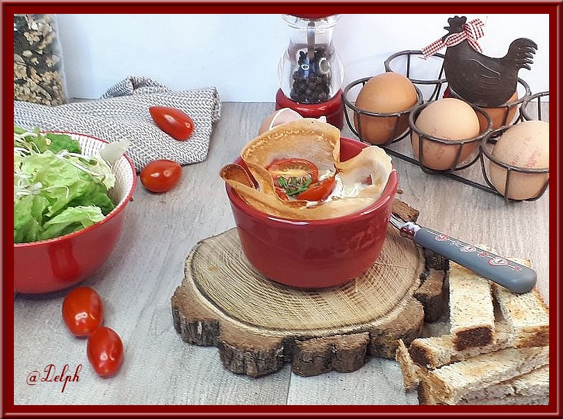 Moi aussi j’adore les oeufs cocotte. La feuille de brick apporte du croustillant, j’aime beaucoup.