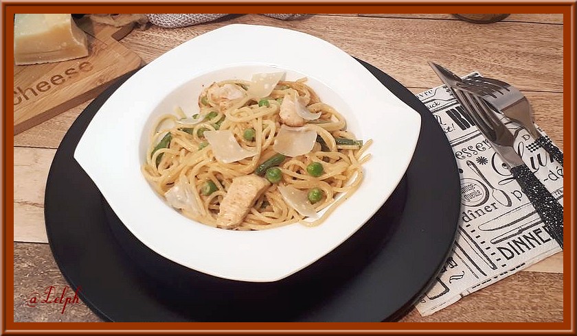 Une assiette bien gourmande. Ca me donne envie de manger des pâtes Delphine, ça fait longtemps que je n’en ai pas mangées 🙂 Bisous