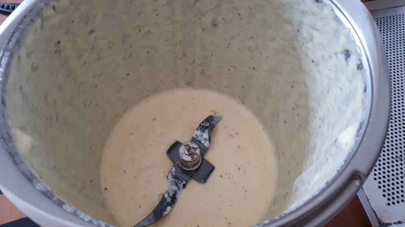 3. Dans le bol du Thermomix mettre les œufs, la ricotta et la crème. Saler, poivrer, ajouter le piment d’Espelette puis mélanger 30sec/vit4.