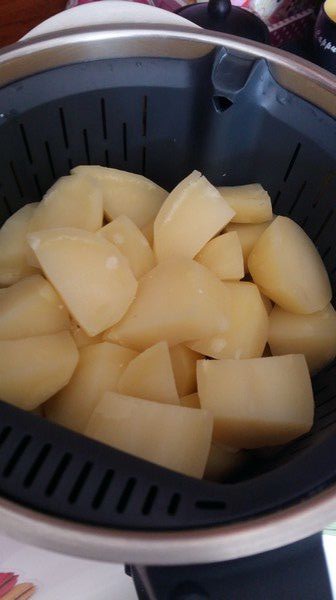 - Éplucher les pommes de terre et coupez-les en petits dés puis déposez-les dans le panier de cuisson.