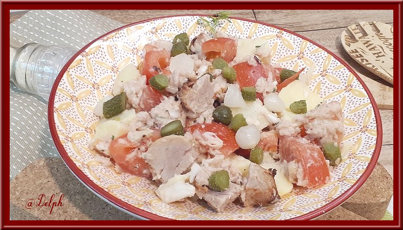 J’ai enlevé les filets d’anchois et câpres et j’ai ajouté des grosses tomates cerises et cornichons.