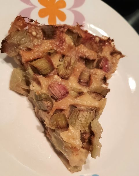 Ma chère Sabrina Deguisne qui se trouve sur toutes les mises à l'honneur est venue cette fois-ci s'inspirer du clafoutis aux cerises, pour le faire avec de la rhubarbe.