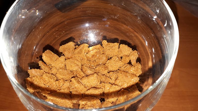 - Mettre au fond de la verrine les spéculoos émiettés, ajouter par dessus 2/3 des fruits, puis le yaourt mélangé au sucre, mettre le reste de fruits sur le dessus.