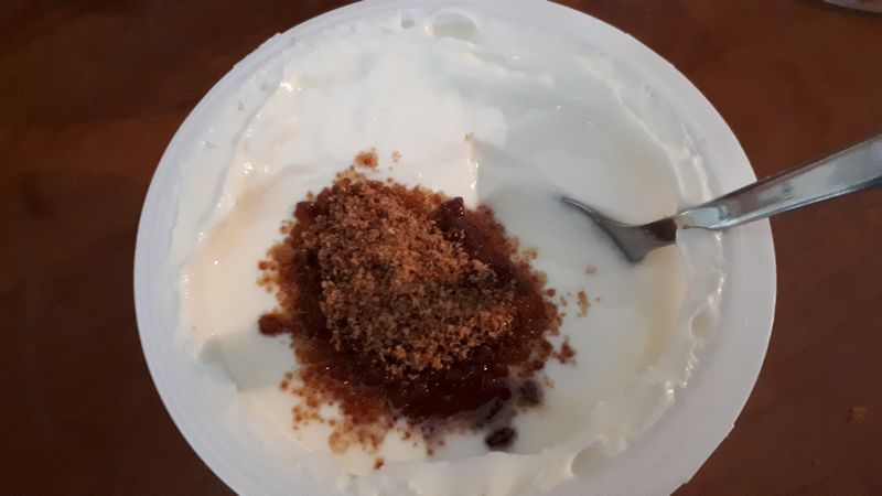 - Verser le sucre dans le yaourt et bien le mélanger.
