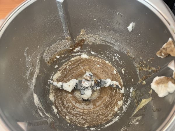 - Mettre dans votre bol le beurre puis faire chauffer 2min30/60°C/Vit2, à la sonnerie ajouter la farine, le sucre, la poudre d’amande, la vanille et mélanger 15sec/vit4, racler les bords, insérer le fouet et incorporer le blanc en neige puis mélanger 1min/Vit1.