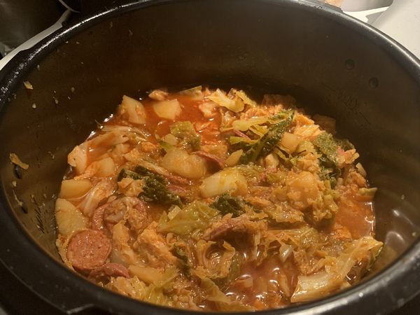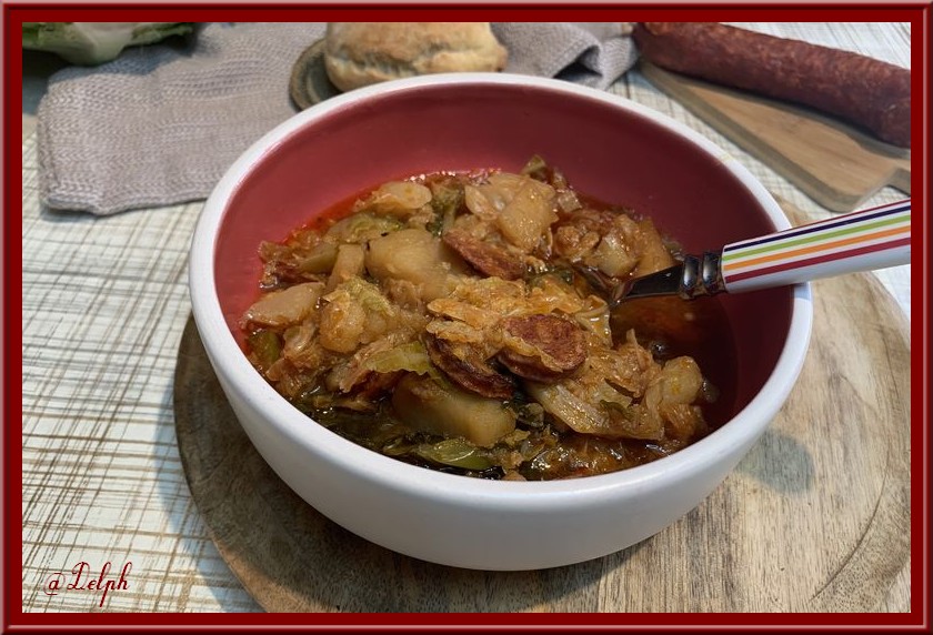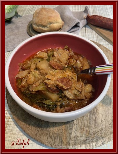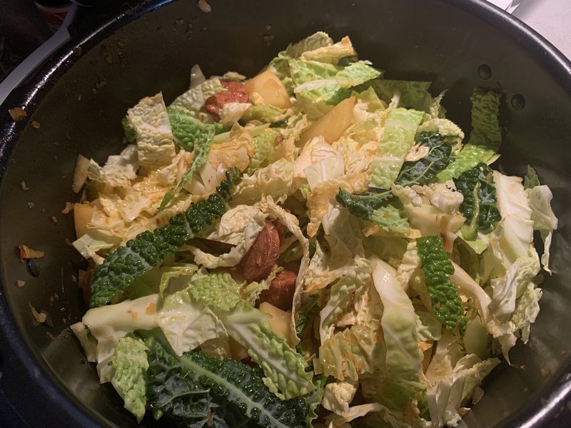 7. Ajouter le chou et laissez cuire 15 minutes.