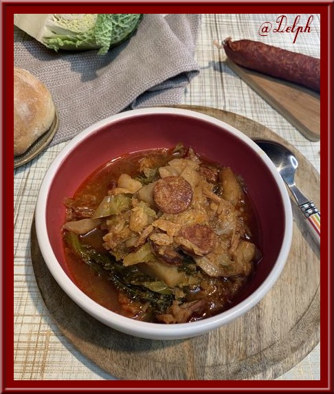 Voici une soupe rustique, ici elle n’est pas mixée. J’aime beaucoup déguster ce genre de soupe car cela fait un repas bien complet.