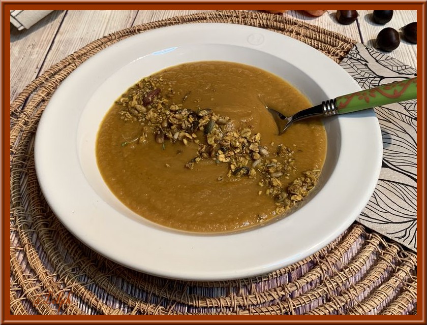 - Servir bien chaud, vous pouvez saupoudrer d’un granola salé.