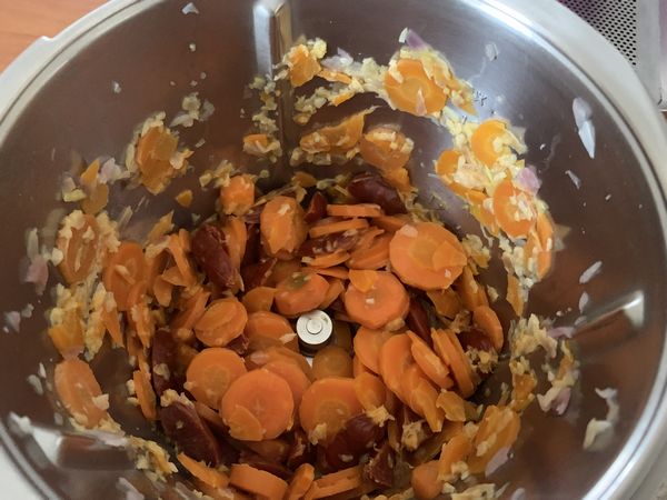 - Ajouter les carottes et cuire 15 minutes à feu moyen en remuant régulièrement.