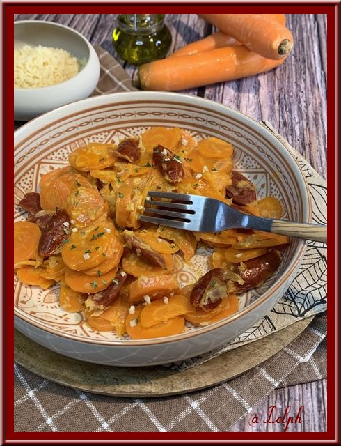 Moi non plus, j’avoue je n’aime pas spécialement gourmande de carottes cuites mais je ne refuserais pas de déguster ton p’tit plat, la crème et le chorizo ne peuvent que faire chavirer mes papilles 😉