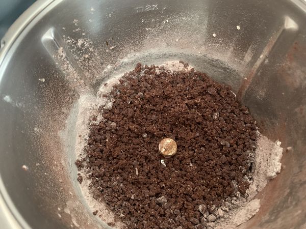 - Ajouter l’oeuf, la vanille, la farine, le cacao et la levure puis mélanger 30sec/vit4. Racler les bords.