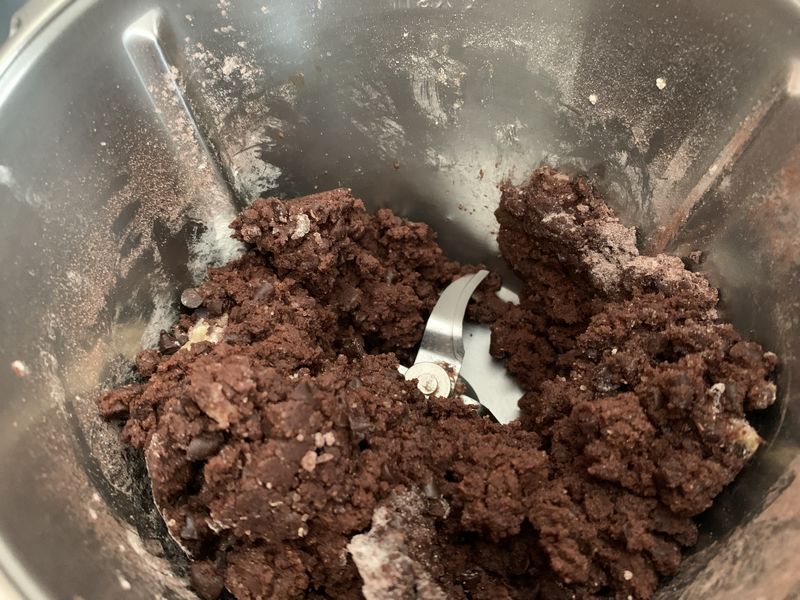 - Verser les pépites de chocolat puis mélanger 30sec/couteau inversé/vit3.