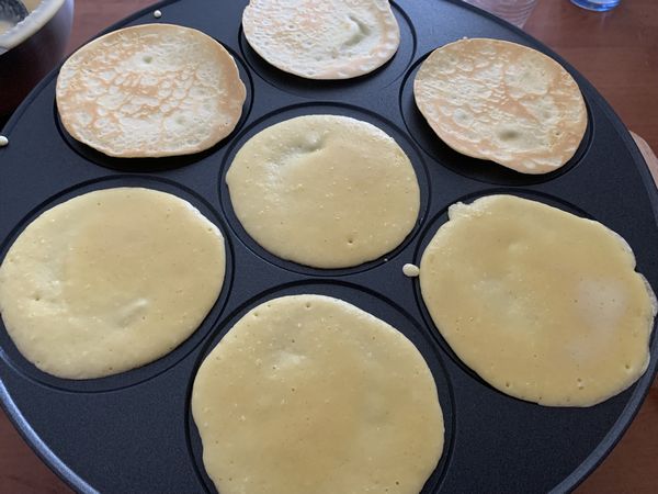 3. Verser des portions de pâte dans une poêle à crêpes beurré et laisser cuire des deux côtés.