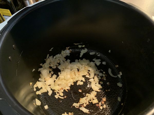 - Mettre votre Cookéo en mode dorer, verser l’huile ajouter l’oignon et laisser dorer 1 minute, ajouter les choux et les carottes mélanger et laisser dorer 8 minutes en mélangeant régulièrement.