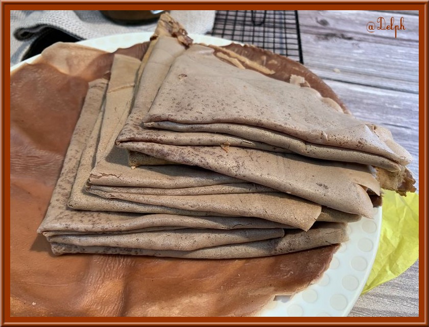 - Débarrasser la crêpe sur un plat, poursuivre de la même façon jusqu’à épuisement de la pâte.