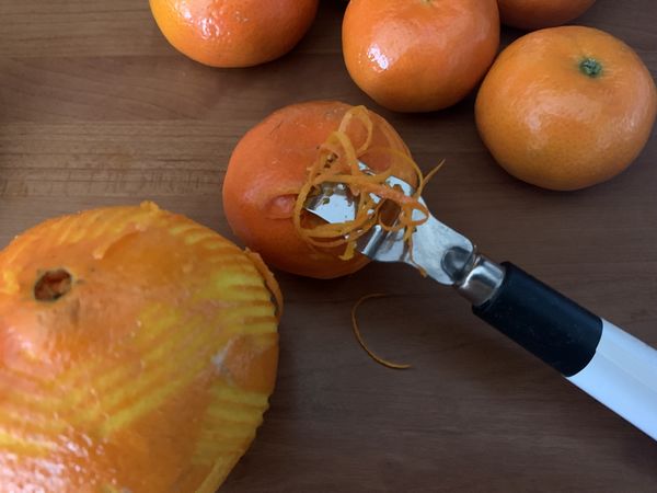 - Récupérer les zestes de l’orange et de la clémentine avec un zesteur et les mettre dans le bol avec le sucre puis mixer 20sec/Vit10.