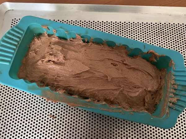 - Beurrer un moule à cake et y verser la pâte.