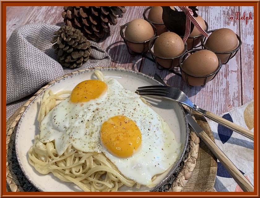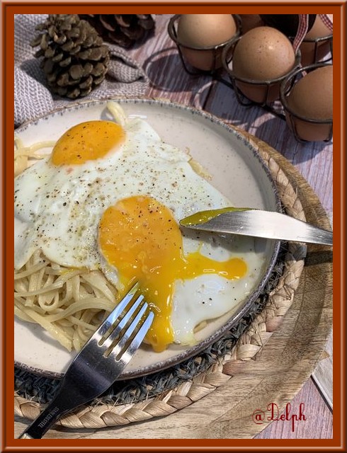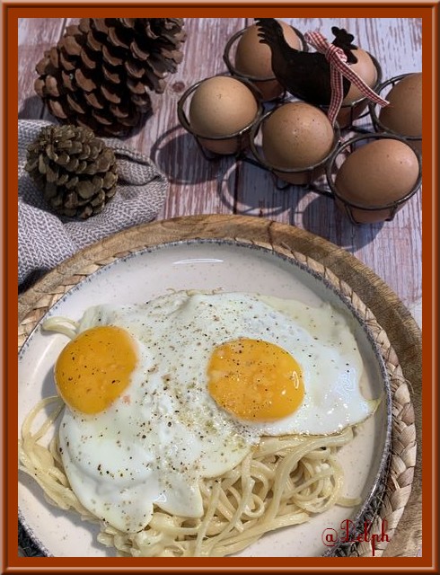 Spaghetti aux fromages et oeufs à cheval de Philippe Etchebest