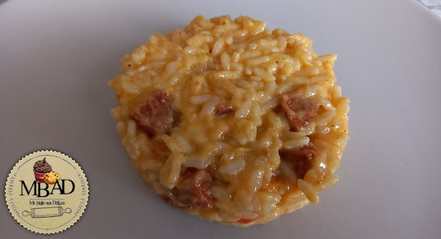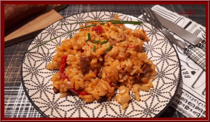 Sandrine est venue aussi tester un plat salé, le risotto au chorizo au Cookéo.