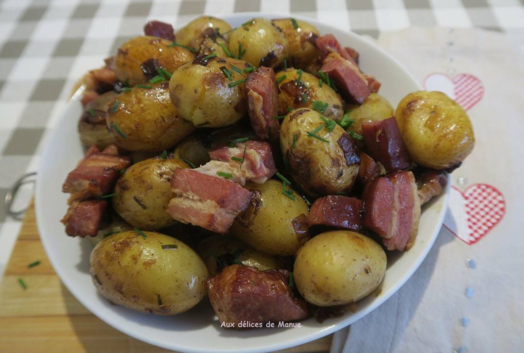 Manue du superbe  " Au délices de Manue" est venue tester les pommes de terre grenailles au lardon.