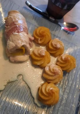 Sabrina m'a fait le plaisir de tester une deuxième recette salée et cette fois,les escalopes de dinde roulées au cheddar et lard.