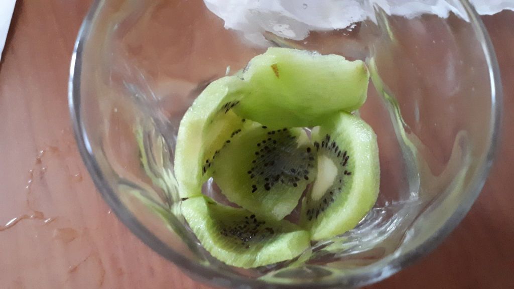 - Couper un kiwi dans le sens de la longueur, les disposer le long de la paroi du verre.