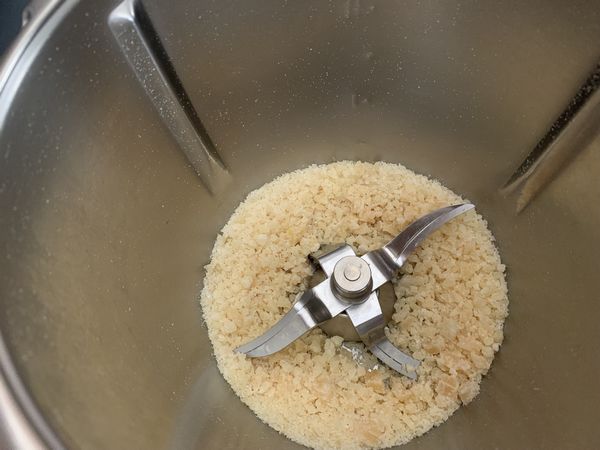 - Mettre votre parmesan coupé en morceaux dans le bol du Thermomix et mixer 8sec/vit9, réserver.