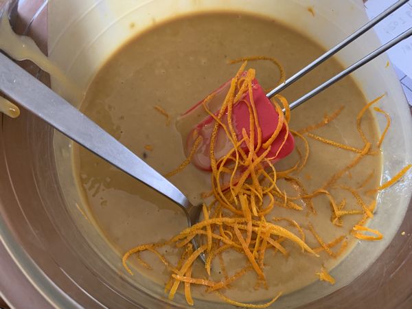 3. Dans la deuxième part, ajouter les zestes d’une orange.