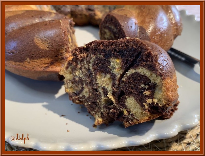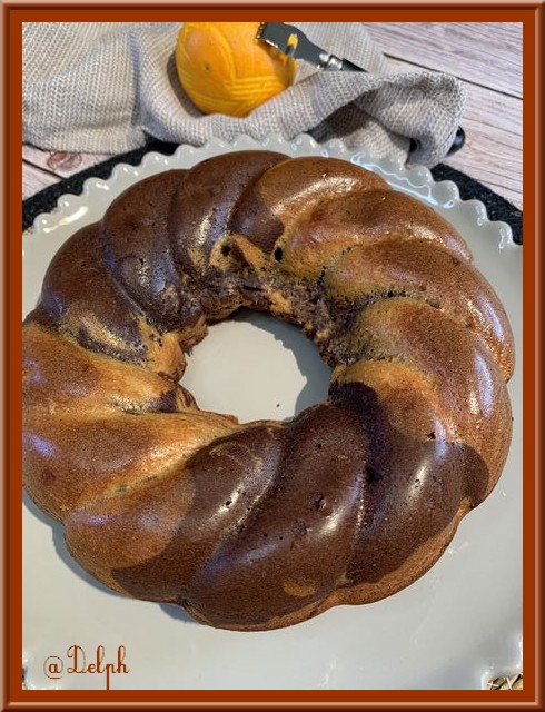 Pour votre goûter ce gâteau marbré vous plaira, cette association est très agréable à déguster. Les zestes d’orange viennent parfumés délicatement ce gâteau, avec un bon thé vous vous régalerez. C’est une recette que j’ai piochée chez Petit chou sucré pour le jeu « Tests de recettes entre blogueurs ».