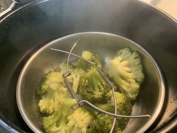 - Détailler les bouquets de brocoli et les déposer dans le panier vapeur.