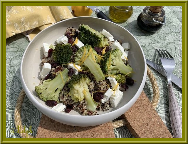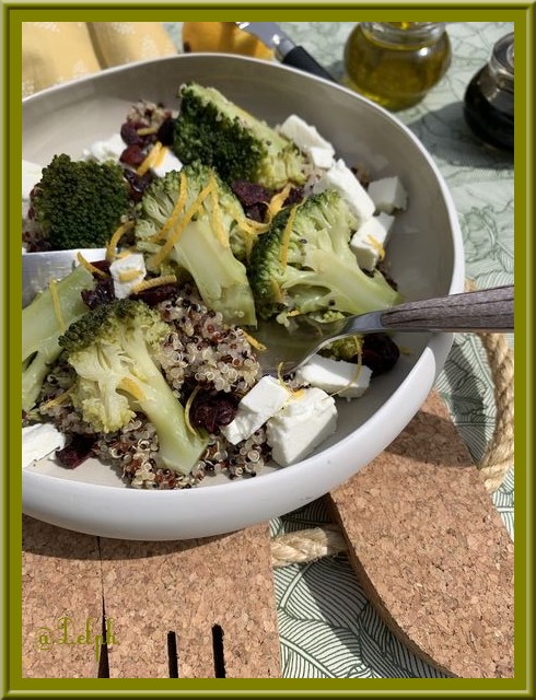 Une nouvelle salade toute simple d’exécution, il n’y a qu’a faire cuire le brocoli et le quinoa et le tour est joué. Pour ceux qui n’apprécient pas le quinoa, vous pouvez le remplacer par du boulghour, ou du blé ou pourquoi pas par de la semoule.