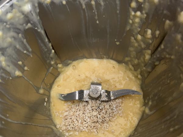 - Ajouter les flocons d’avoine et mélanger 10sec/couteau inversé/vit3.