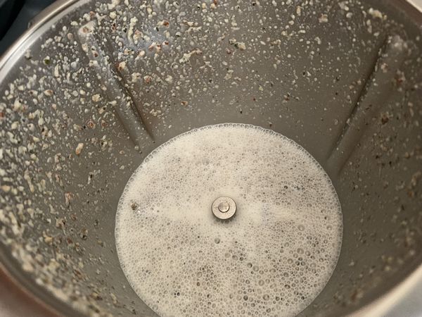 - Mettre dans le bol, le reste des graines avec le miel et le lait fermenté, mixer 20sec/Vit8, racler les bords.