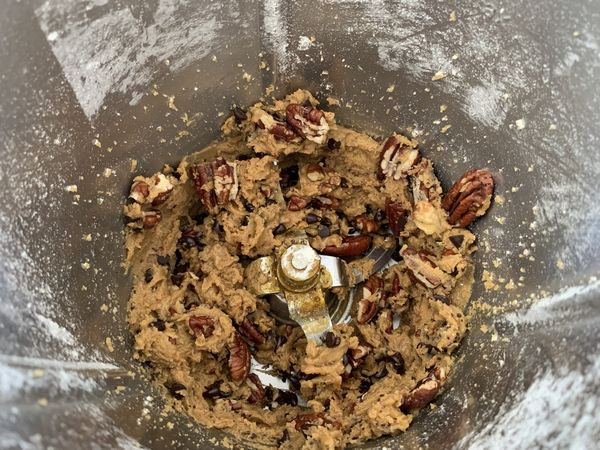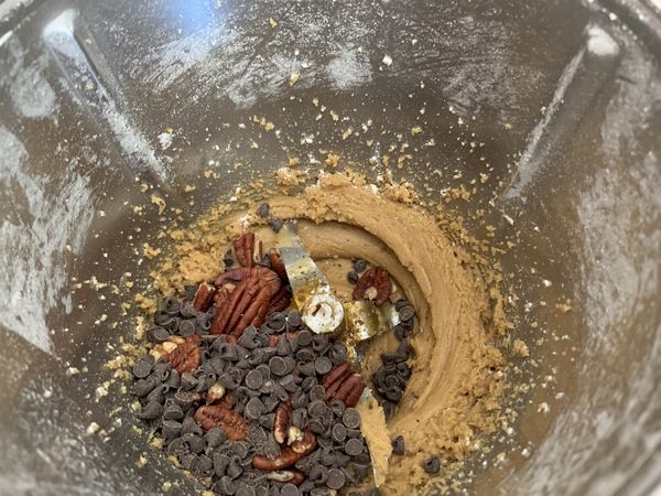 - Incorporer les noix de pécan et les pépites de chocolat puis mélanger 15 sec/couteau inversé/Vit1.