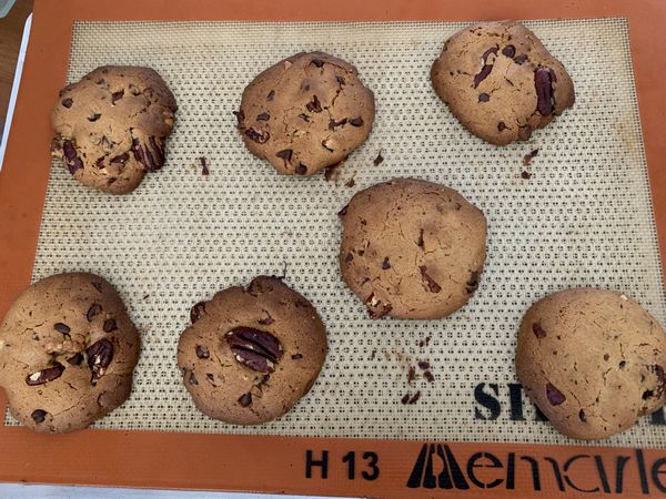 - Enfourner les cookies durant 12 minutes afin qu’ils dorent mais restent moelleux à cœur (prolonger la cuisson de 3 minutes ou les laisser dans le four éteint si vous les préférez secs).